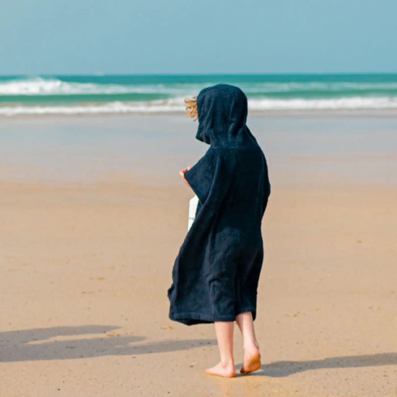 Keep your child dry and warm after a dip in the ocean with the Ansumco. Eco Kid's Changing Towel Poncho in Navy. Changing clothes is simple with the towel poncho, no matter where you are.