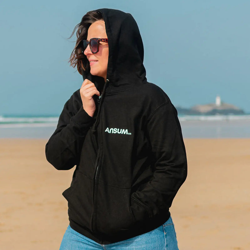 A full-zip hoodie with classic Ansumco. style. Zip it up. Zip it down. Toss it in...